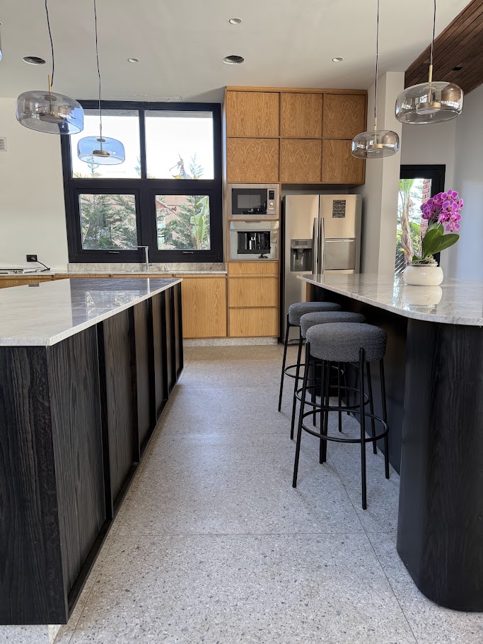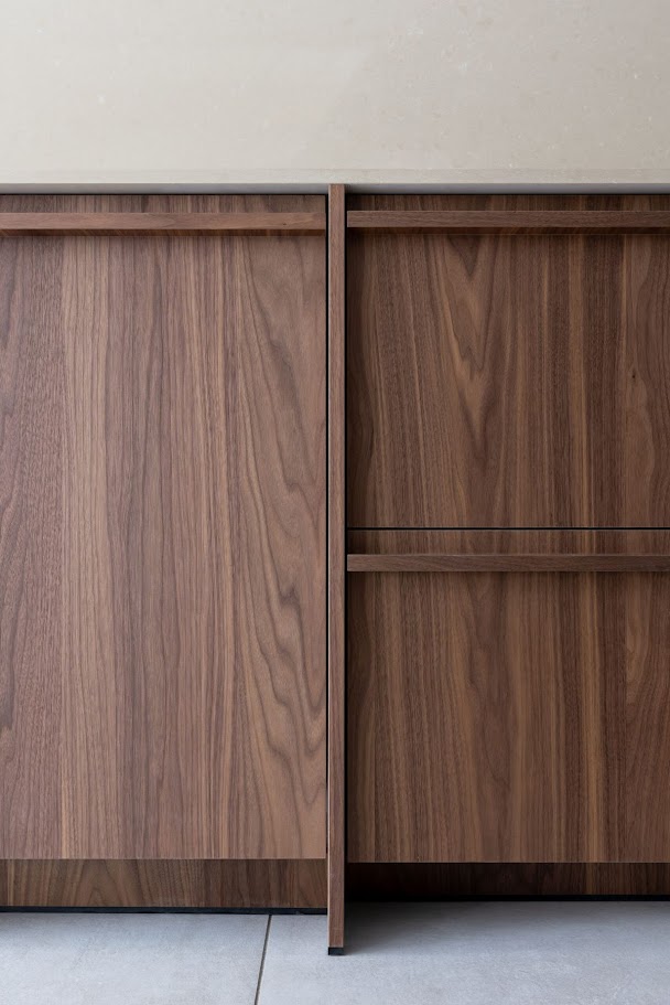 Diseño continuo y sin interrupciones visuales. La Línea Fiorenza se caracteriza por sus puertas con tirador integrado, realizados en el mismo material del frente, disponibles en melamina, laqueado o enchapado. En su versión melamínica, el interior conserva el mismo tono que el exterior, logrando una estética uniforme y cuidada. En las otras terminaciones, se puede optar por interior en melamina blanca o grafito, siempre en MDF de 18mm. Una propuesta sobria, elegante y perfectamente cohesionada.